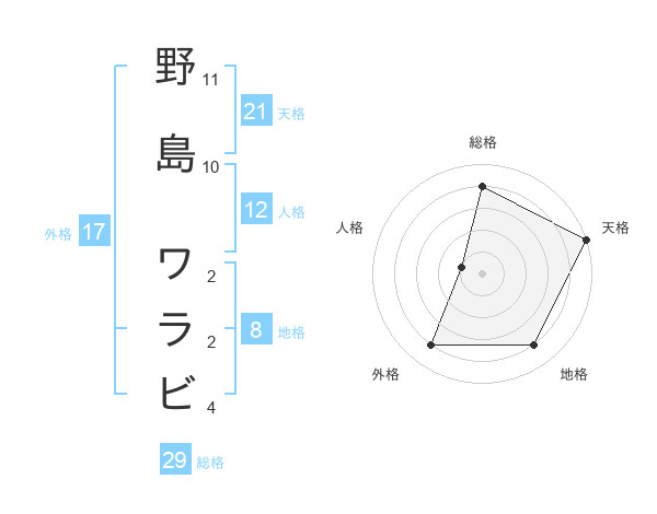 野島 ワラビさんを姓名の画数から五運を鑑定