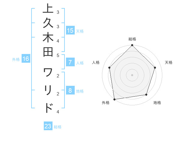 上久木田 ワリドさんの外格は16画の5点!