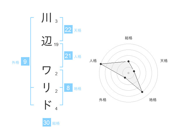 川辺 ワリドさんを姓名の画数から五運を鑑定