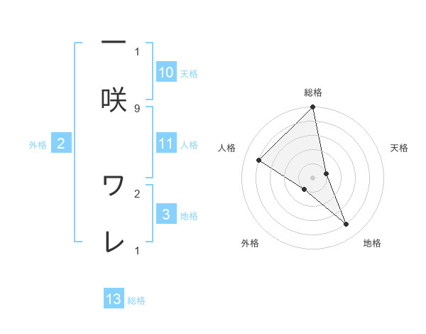 一咲 ワレさんの総格は13画の5点!