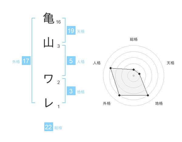 亀山 ワレさんを姓名の画数から五運を鑑定