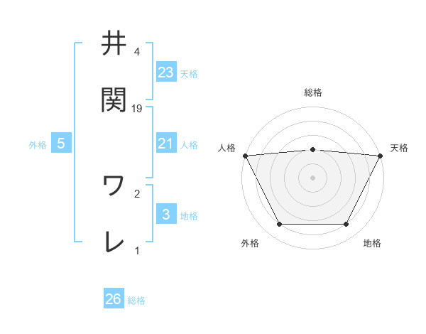 井関 ワレさんの総格は26画の2点!