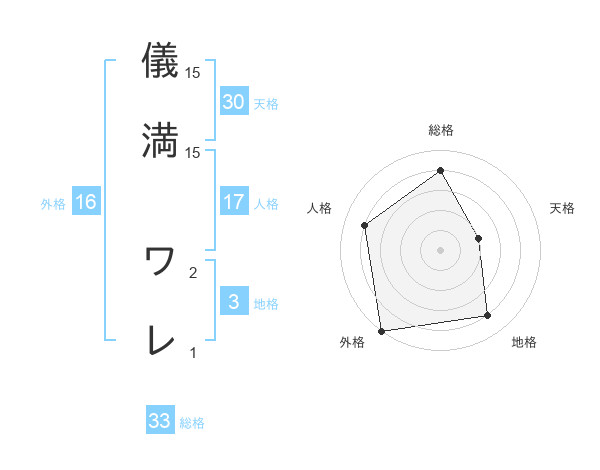 儀満 ワレさんの天格は30画の2点!