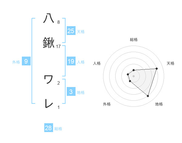 八鍬 ワレさんの総格は28画の1点!