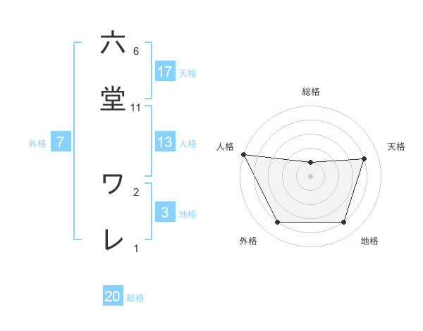 六堂 ワレさんを姓名の画数から五運を鑑定