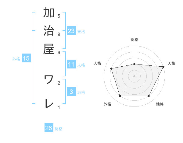 加治屋 ワレさんを姓名の画数から五運を鑑定