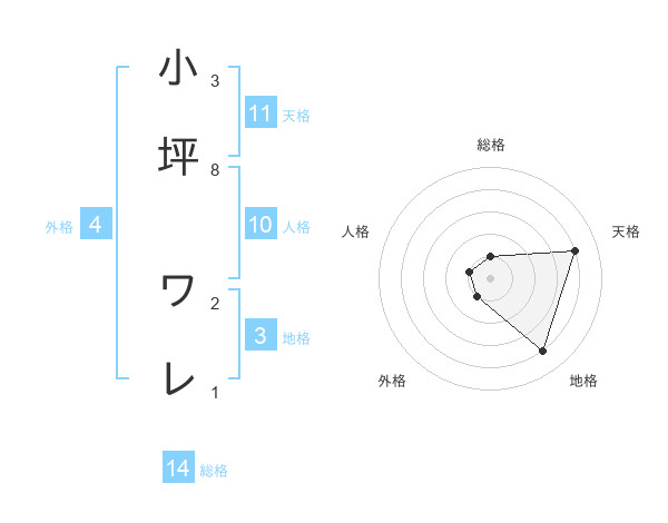 小坪 ワレさんの天格は11画の4点!