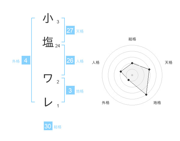小塩 ワレさんの総格は30画の2点!