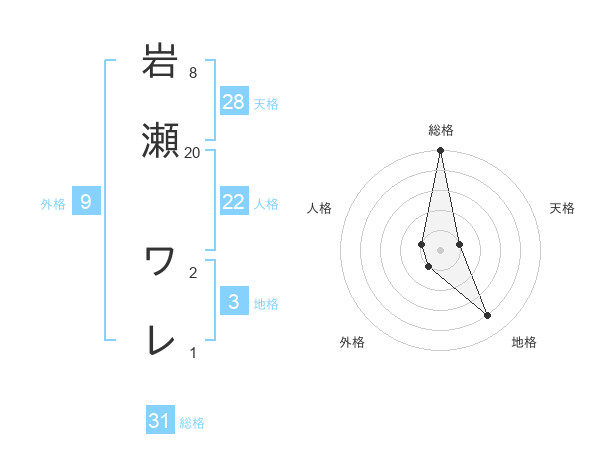岩瀬 ワレさんを姓名の画数から五運を鑑定