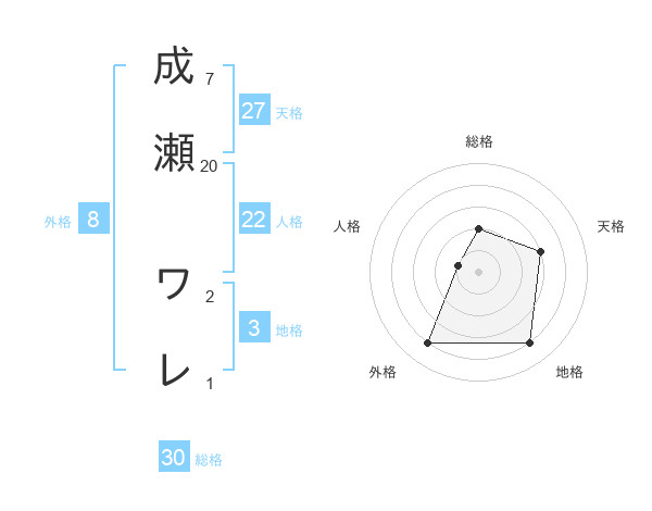 成瀬 ワレさんの総格は30画の2点!