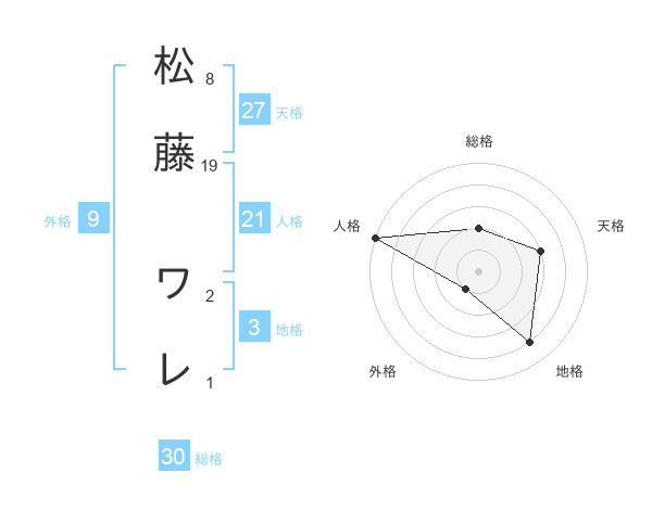 松藤 ワレさんを姓名の画数から五運を鑑定