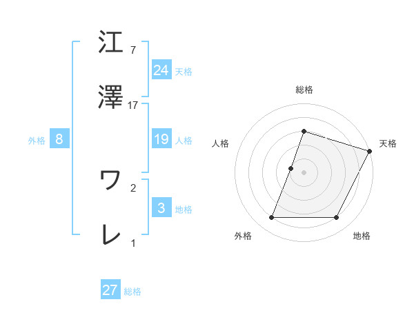 江澤 ワレさんを姓名の画数から五運を鑑定