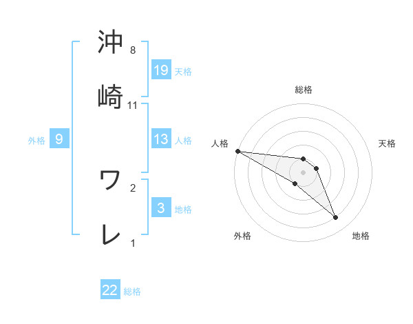 沖崎 ワレさんを姓名の画数から五運を鑑定