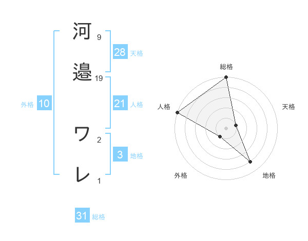 河邉 ワレさんの総格は31画の5点!