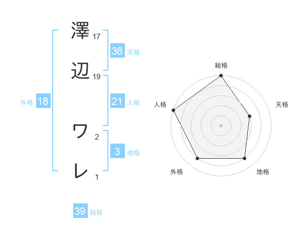 澤辺 ワレさんの総格は39画の5点!