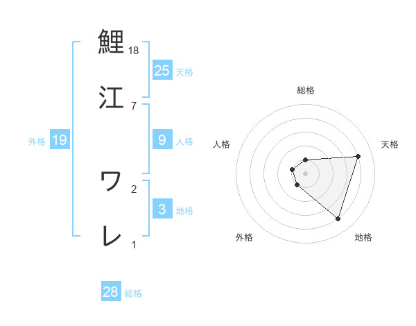 鯉江 ワレさんの総格は28画の1点!