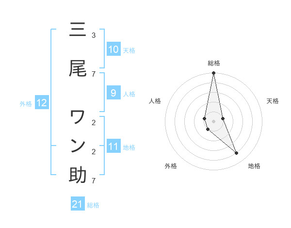 三尾 ワン助さんを姓名の画数から五運を鑑定