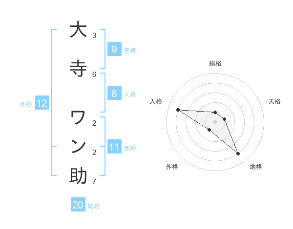大寺 ワン助さんの総格は20画の1点!