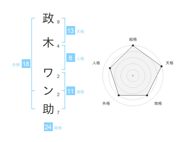 政木 ワン助さんの天格は13画の5点!