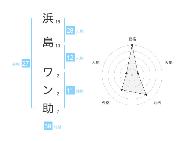 浜島 ワン助さんを姓名の画数から五運を鑑定