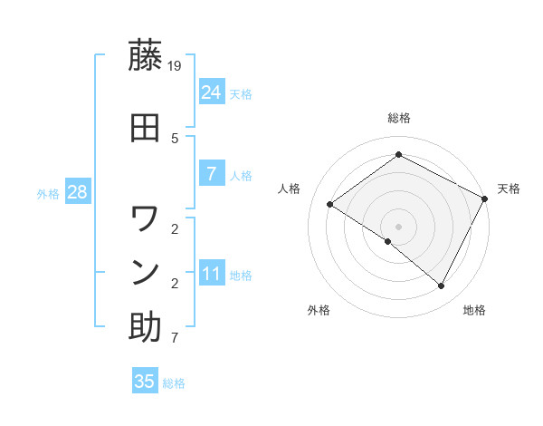 藤田 ワン助さんを姓名の画数から五運を鑑定
