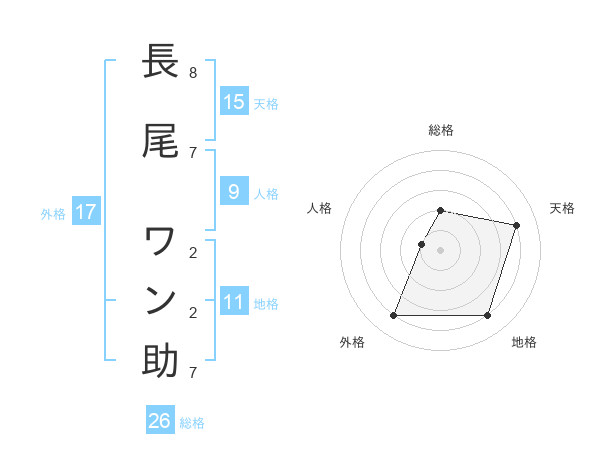 長尾 ワン助さんを姓名の画数から五運を鑑定
