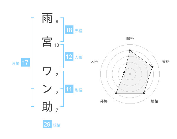 雨宮 ワン助さんを姓名の画数から五運を鑑定