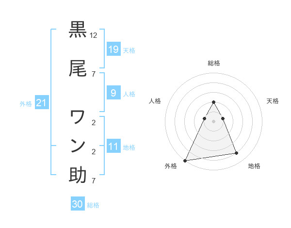 黒尾 ワン助さんを姓名の画数から五運を鑑定