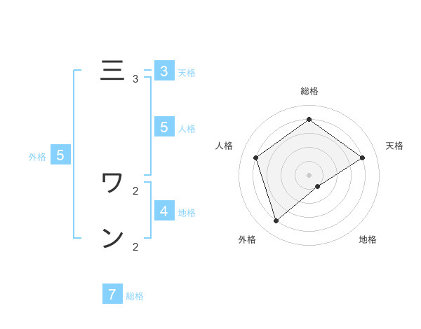 三 ワンさんの地格は4画の1点!