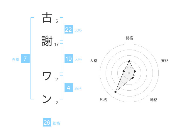 古謝 ワンさんを姓名の画数から五運を鑑定