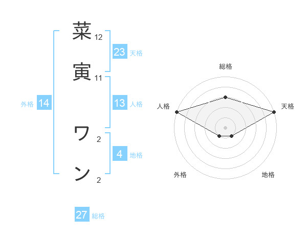 菜寅 ワンさんの総格は27画の3点!