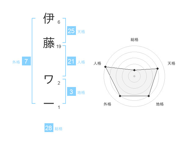 伊藤 ワーさんの天格は25画の4点!