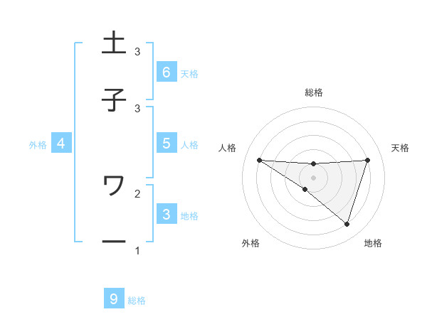 土子 ワーさんの総格は9画の1点!