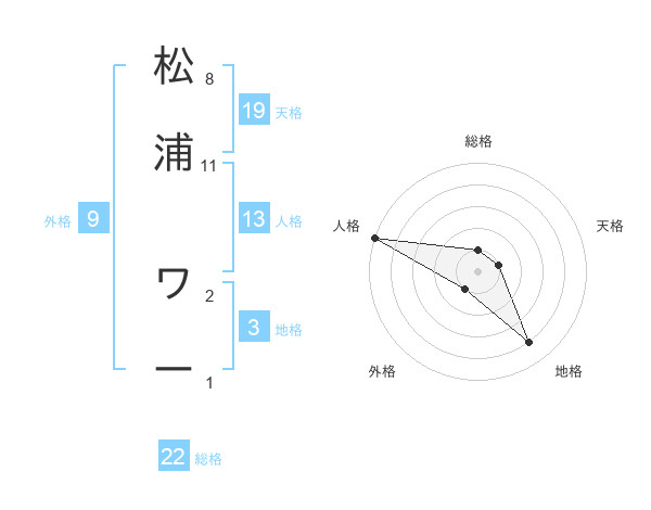 松浦 ワーさんの総格は22画の1点!