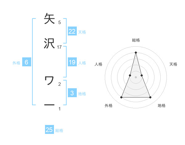 矢沢 ワーさんの天格は22画の1点!