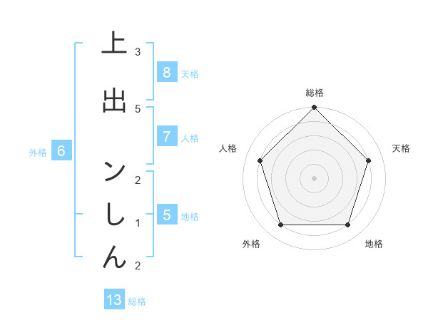 上出 ンしんさんを姓名の画数から五運を鑑定