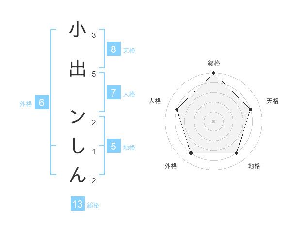 小出 ンしんさんの総格は13画の5点!