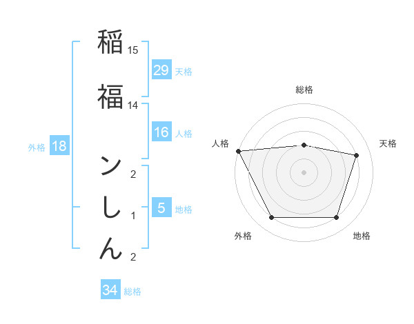 稲福 ンしんさんを姓名の画数から五運を鑑定