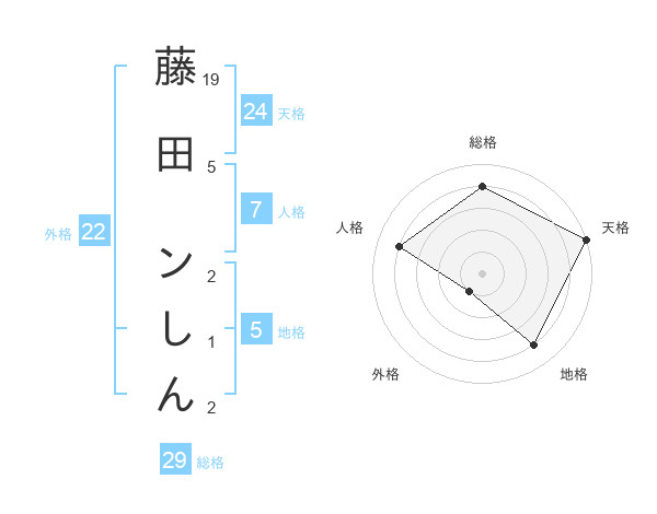 藤田 ンしんさんを姓名の画数から五運を鑑定