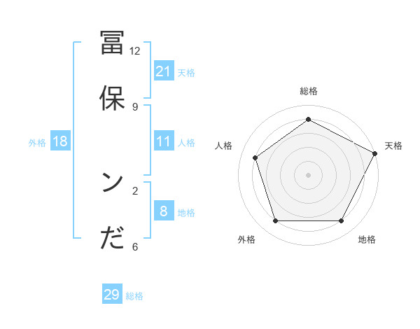冨保 ンださんの総格は29画の4点!