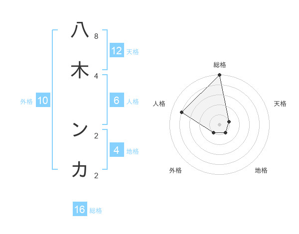 八木 ンカさんの総格は16画の5点!