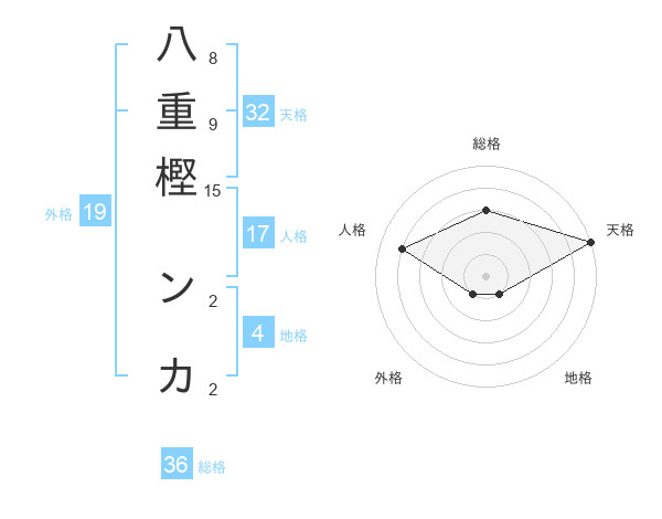 八重樫 ンカさんを姓名の画数から五運を鑑定