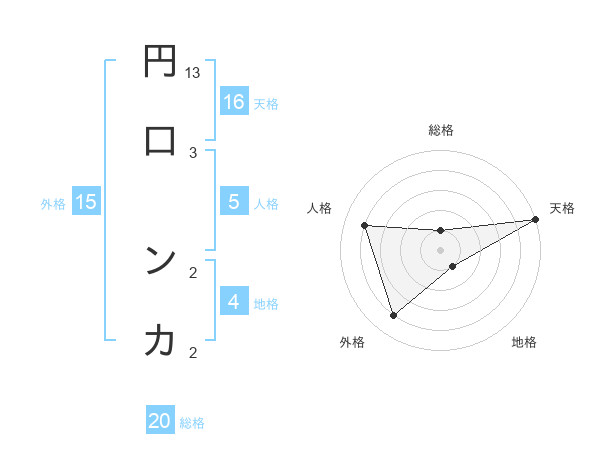 円口 ンカさんの総格は20画の1点!