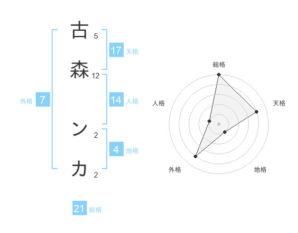 古森 ンカさんの天格は17画の4点!