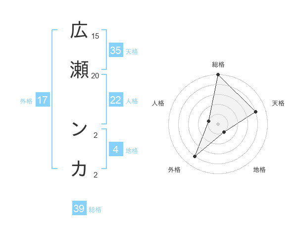 広瀬 ンカさんを姓名の画数から五運を鑑定