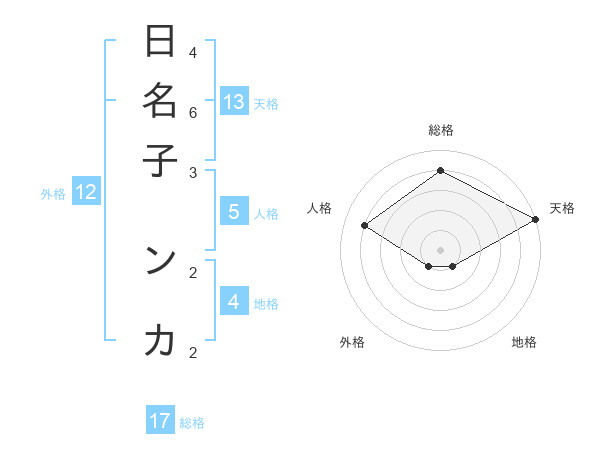 日名子 ンカさんを姓名の画数から五運を鑑定