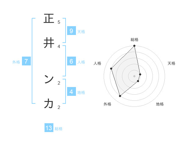 正井 ンカさんの総格は13画の5点!