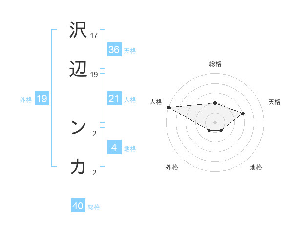沢辺 ンカさんを姓名の画数から五運を鑑定
