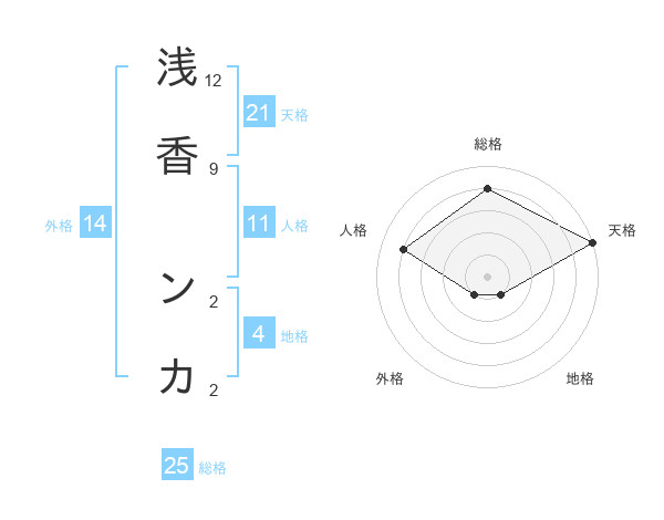 浅香 ンカさんを姓名の画数から五運を鑑定