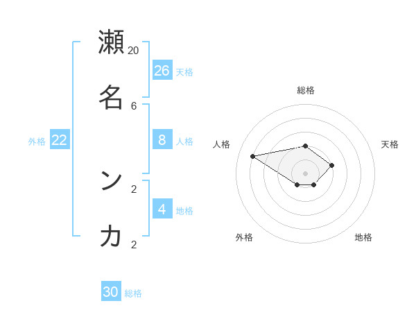 瀬名 ンカさんを姓名の画数から五運を鑑定